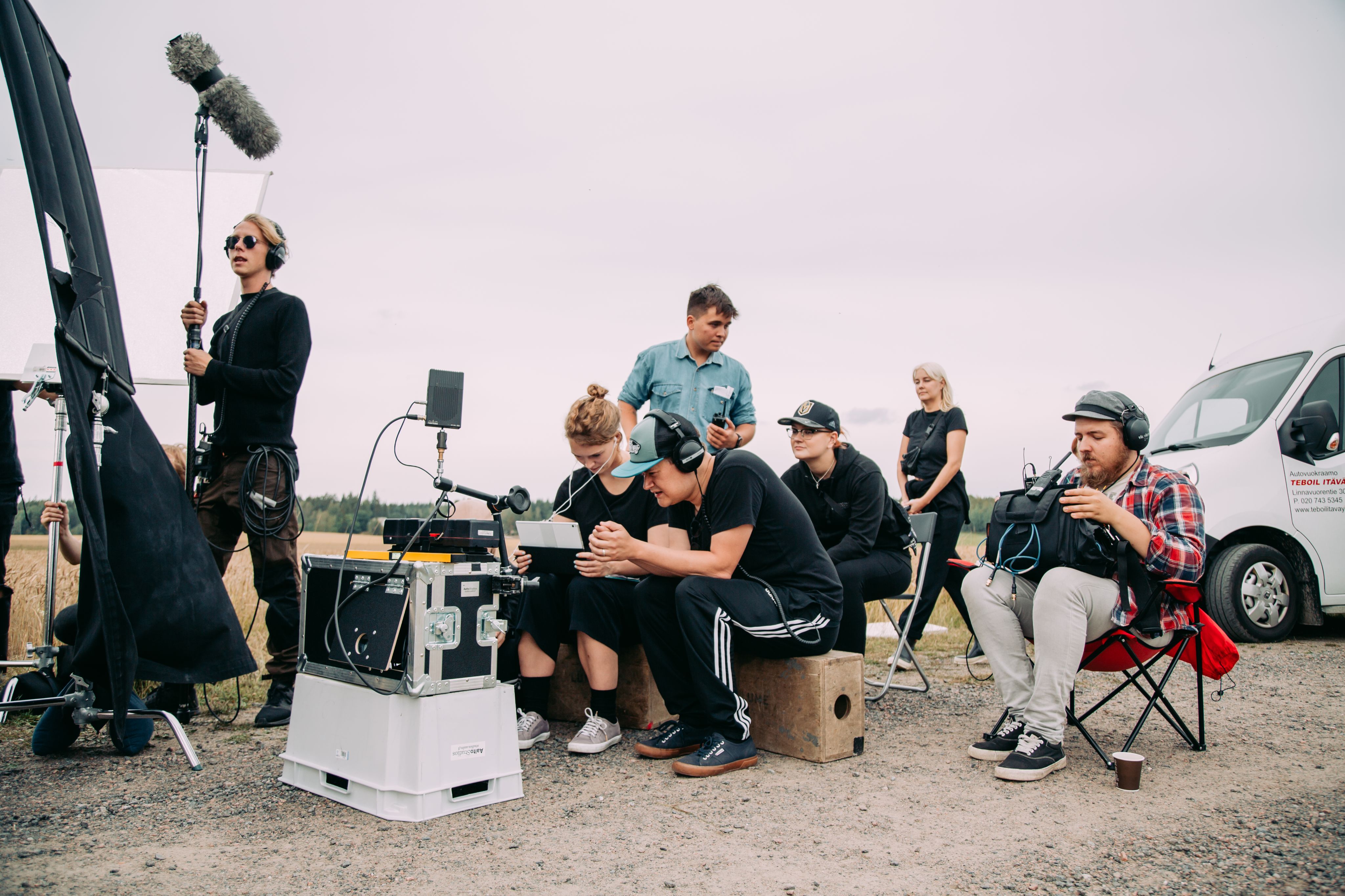 Kuvaaja Iiris Kärkkäinen Meillä on taivas -elokuvan kuvauksissa, kuva: Laura Mainiemi