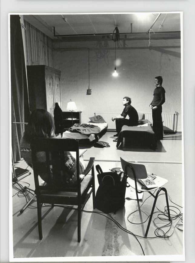 Ohjauksen opiskelija Janne Kuusi ja kuvauksen opiskelija Tahvo Hirvonen elokuva- ja tv-työn kuvausharjoituksissa, 1979
